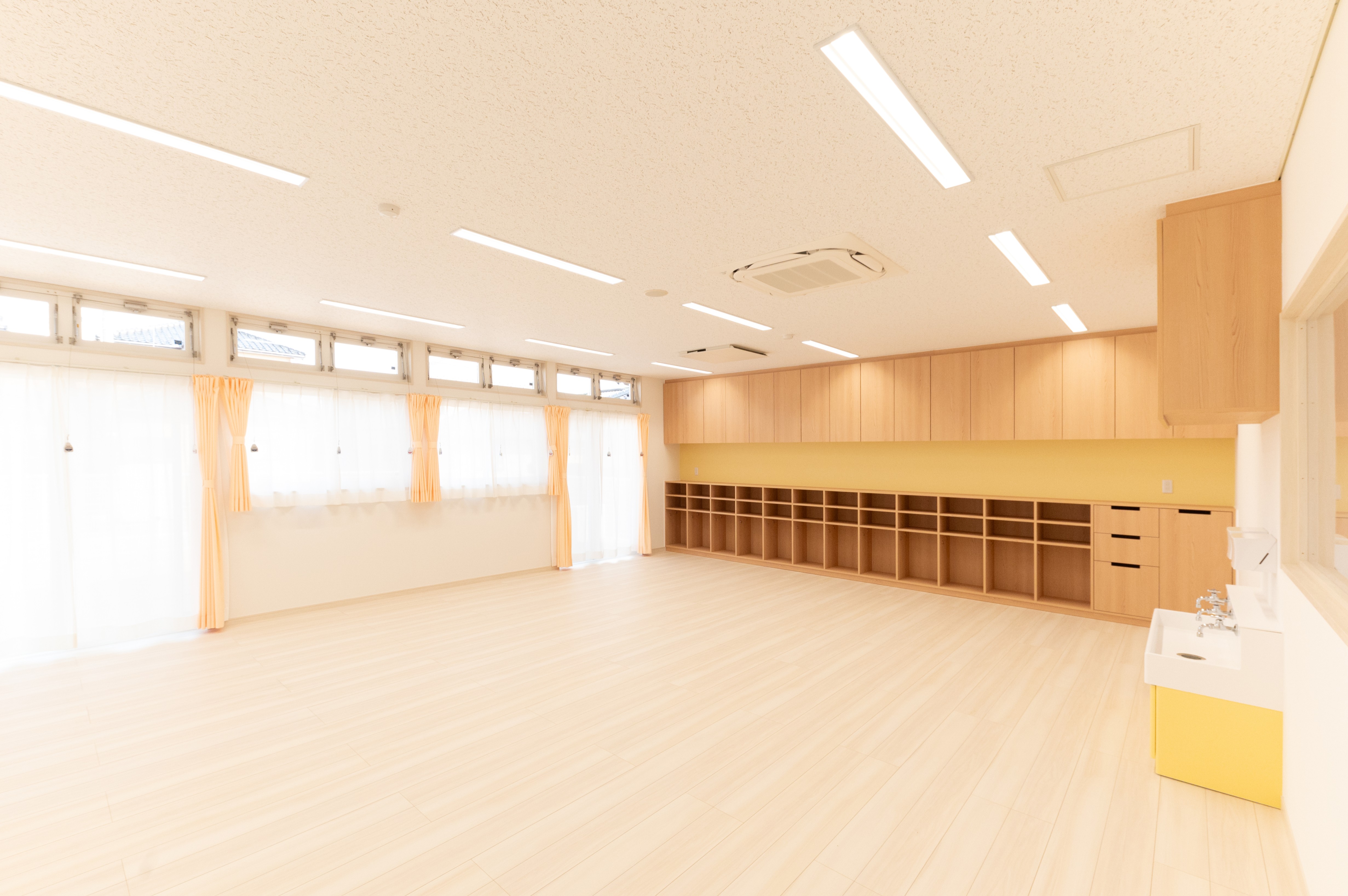 園舎は、保育園に求められる安全性・快適性を確保するため、広々とした平屋建て。