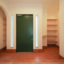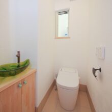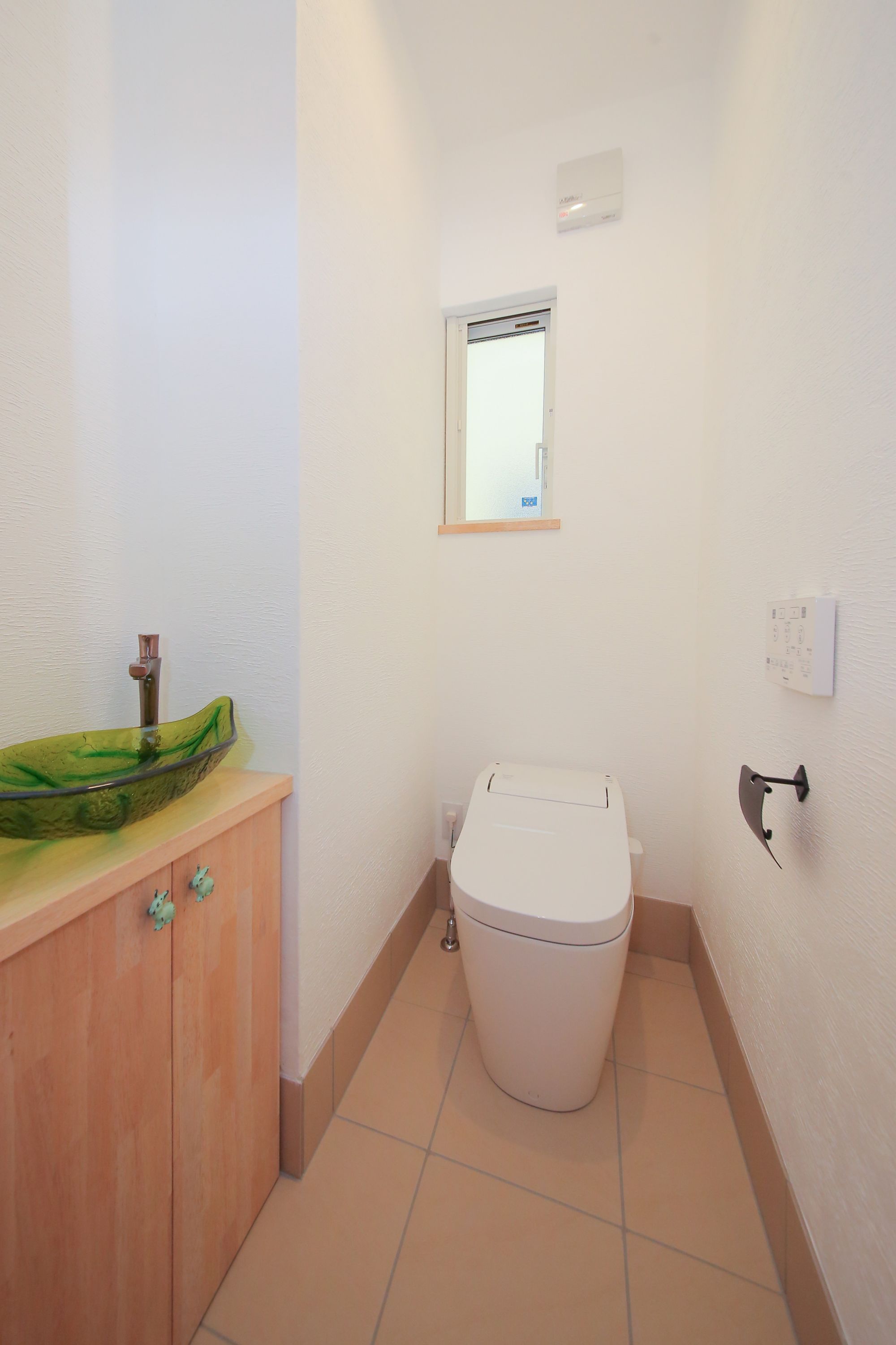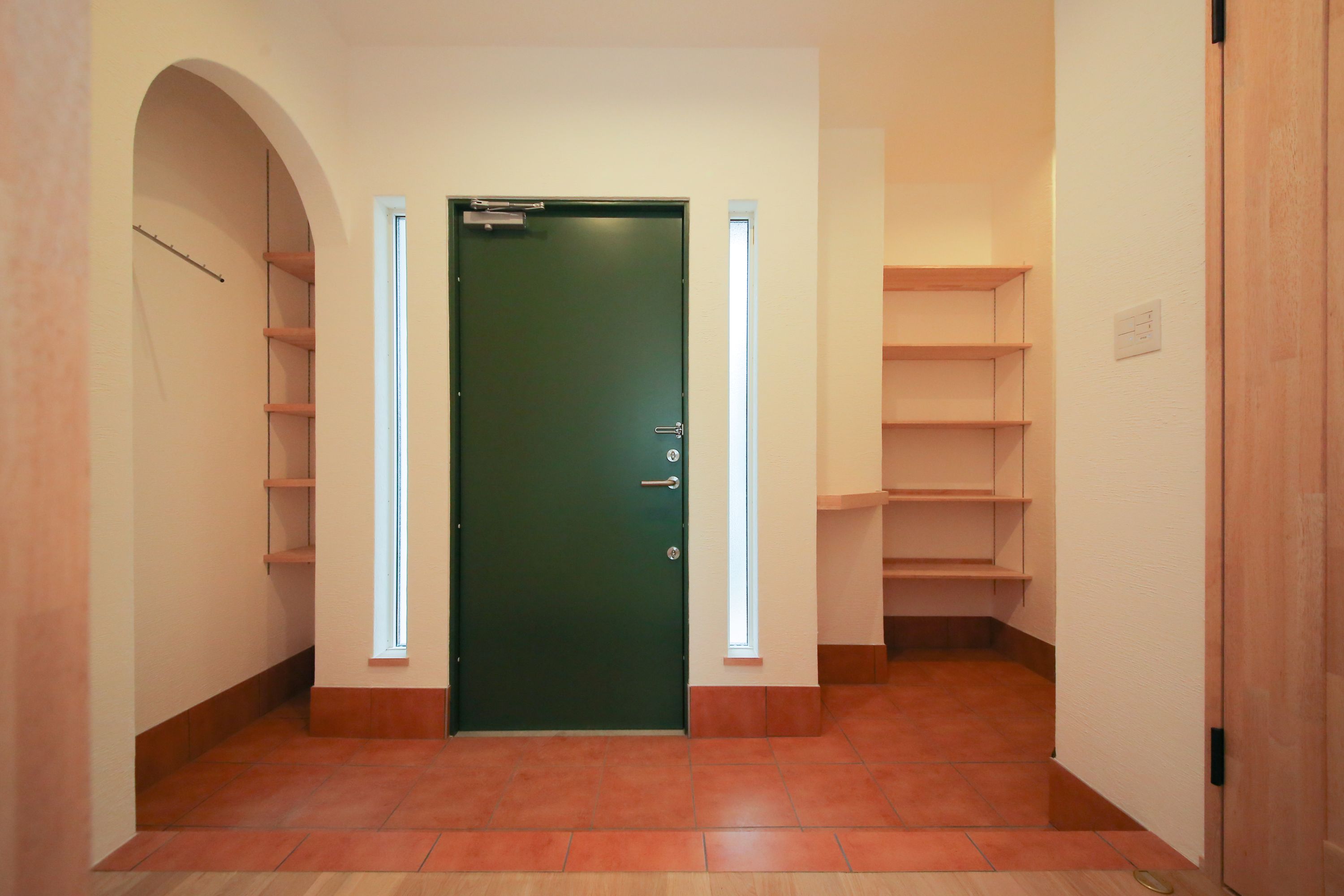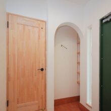 随所に施主様がお選びになった小物を取り入れ、 お気に入りのグリーンで家全体をコーディネート。自然素材の温もりと施主様のセンスが調和した、世界でたった一つの心地よい住まいが完成しました。