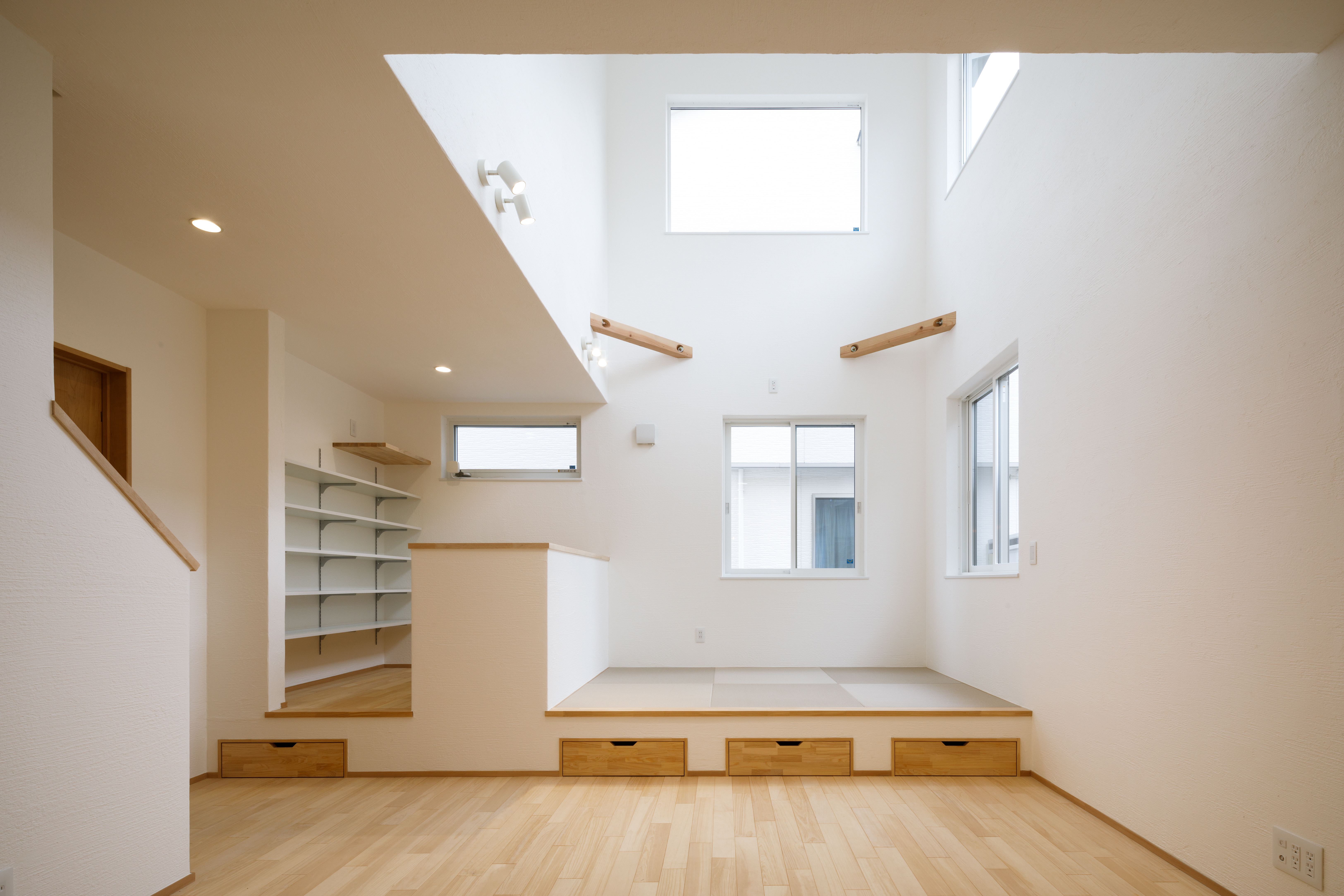 また、プライベート空間と共有スペースを意識した間取りにより、家族それぞれが快適によく過ごせる居住空間を実現。外からの視線を気にせずくつろげる中庭も設け、開放感とプライバシーを両立しました。