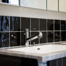 明るい色合いのカバ材の無垢フローリングとも相性抜群。日中は窓からの自然光が、夜はデザインされた照明が、心地よいプライベートタイムを優しく包み込みます。