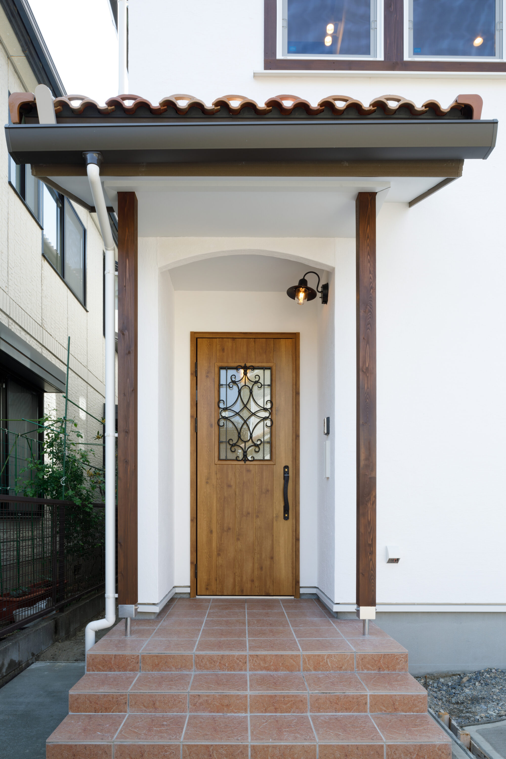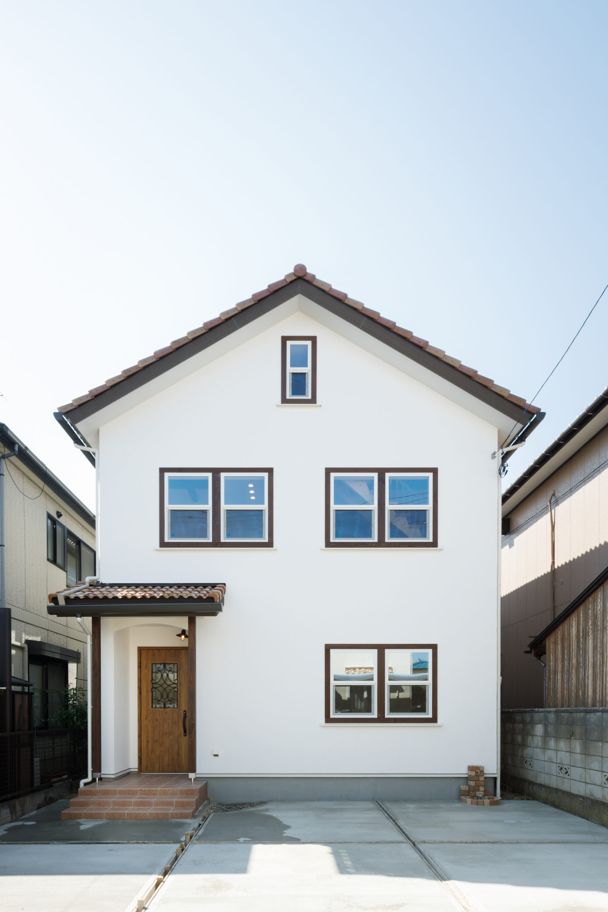 上下窓に掛かる印象深い窓枠モールは漆喰の白とコントラストが印象的で、「可愛い」「素敵」がいっぱいの南欧テイストのお家が完成しました。