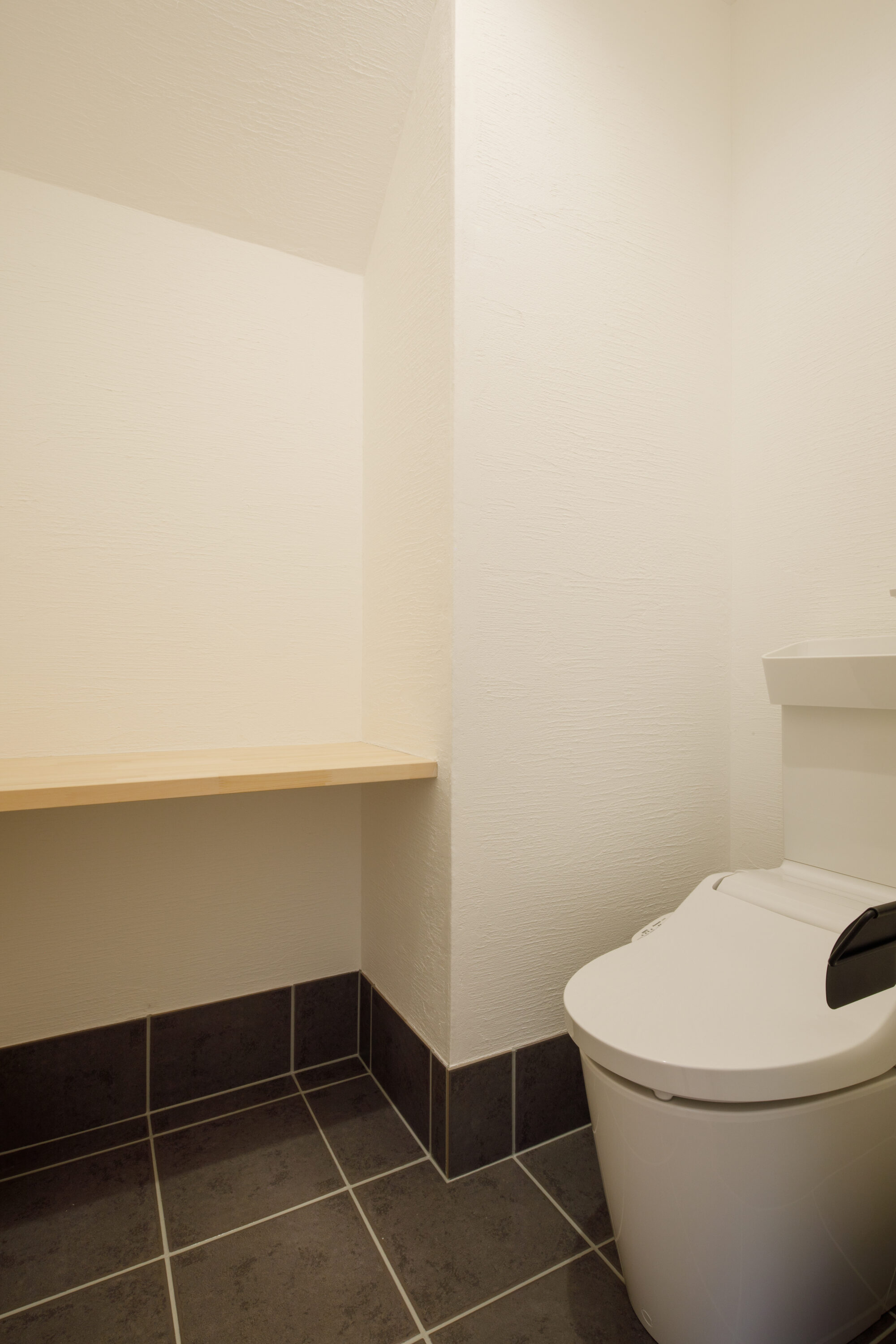 2階トイレはモザイクタイルカウンターと手洗器を設け、明るく可愛らしい雰囲気に。その他、猫専用通路、植樹スペースを設けており、暮らしを豊かにするポイントがたくさん詰まっています。