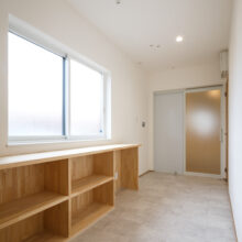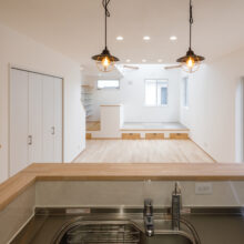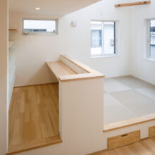 リビングには、空間を緩やかに仕切る小上がりの畳コーナーと書斎を併設。畳コーナーは6帖あり、多目的に使えるフレキシブルな空間。家事をしながらお子様を見守ったり、家族みんなでゴロンと寝転がってリラックスしたり。それぞれの時間を心地よく過ごせます。