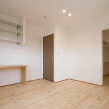 主寝室にはカウンターを造作。本を読んだりPCを置いたり、書斎や趣味のスペースとして自分時間を豊かに彩ります。可動棚や広々としたウォークインクローゼットも備え、収納力も抜群です。