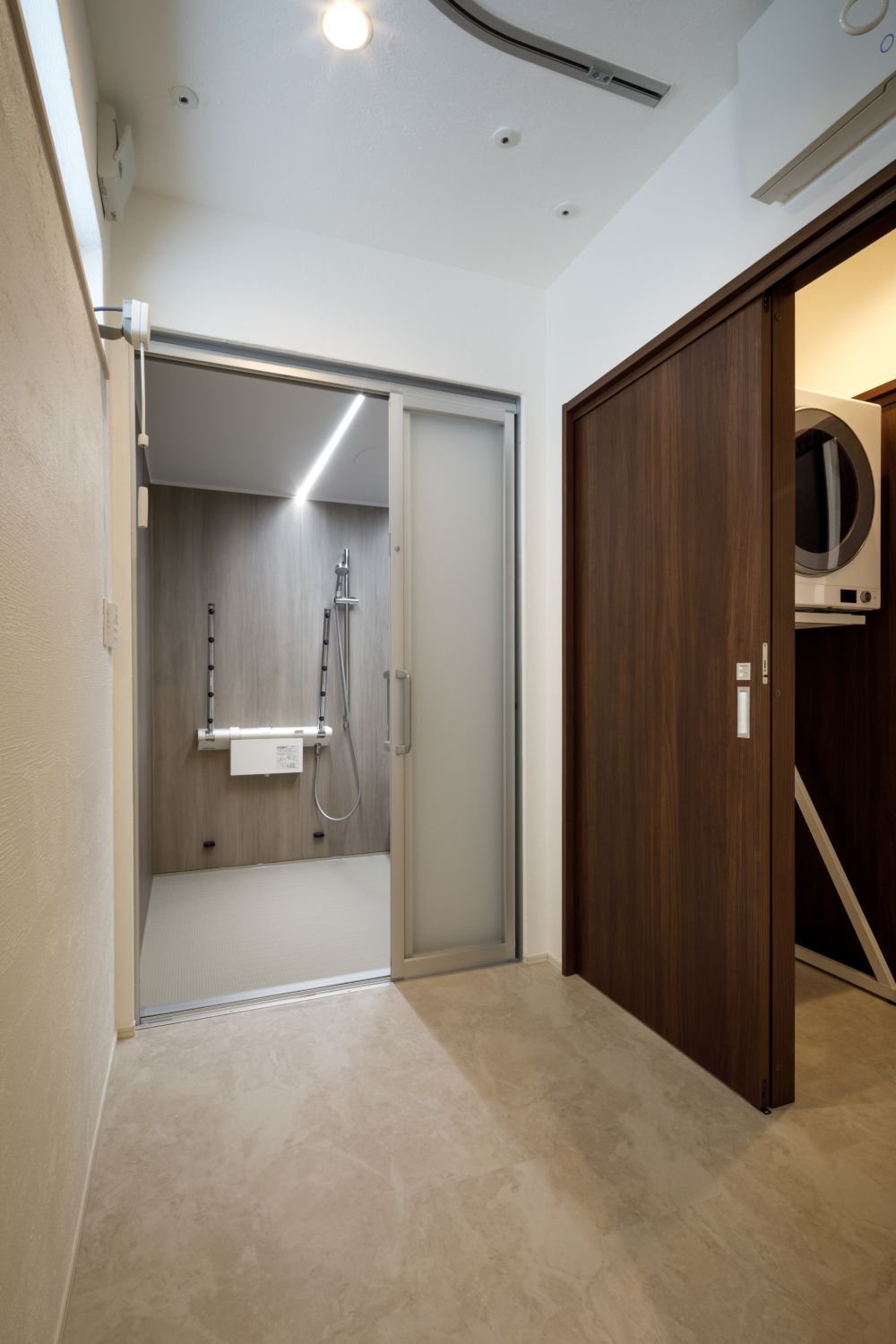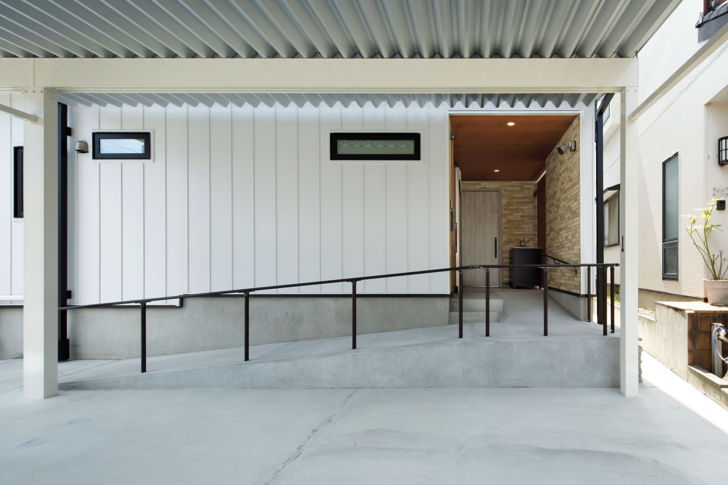 外構のスロープから室内まで段差を極力なくし、浴室付近までスムーズに移動できる動線を確保するなど、バリアフリー設計を徹底。収納はパントリーに集約し、日々の生活動線をシンプルに整えました。