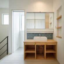 2階はご家族のプライベートゾーンとして、明るいフローリングやクロスでそれぞれの好みを反映。お子さまたちがタイルを選んだ造作洗面台も、家族の個性が光るお気に入りの場所となっています。