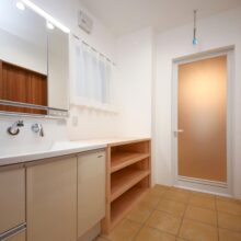 床材には、愛犬が走り回っても傷がつきにくい無垢材ロックファーを採用。自然の温もりを感じられるだけでなく、耐久性にも優れているため、愛犬とのアクティブな毎日も安心して過ごせます。