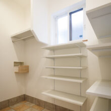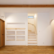 デッドスペースになりがちな階段下は、収納スペースとして有効活用。外部からはアウトドア用品や季節家電を、リビング側からは日用品や掃除用具を収納でき、住まい全体をすっきりと保つことができます。