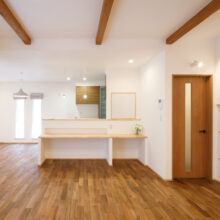 南向きのL字型リビングは、太陽の光をたっぷりと取り込み、明るく開放的な空間。家族団らんの時間を、心地よい陽だまりが包み込みます。