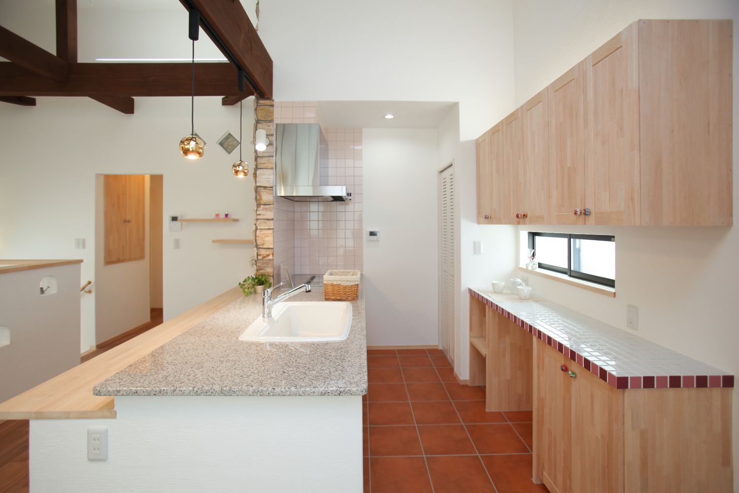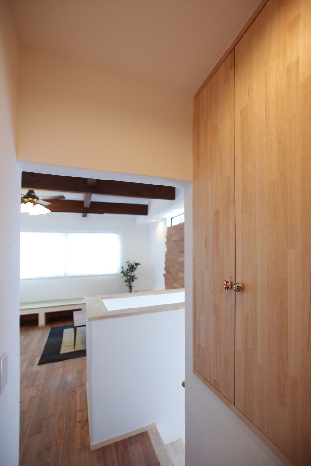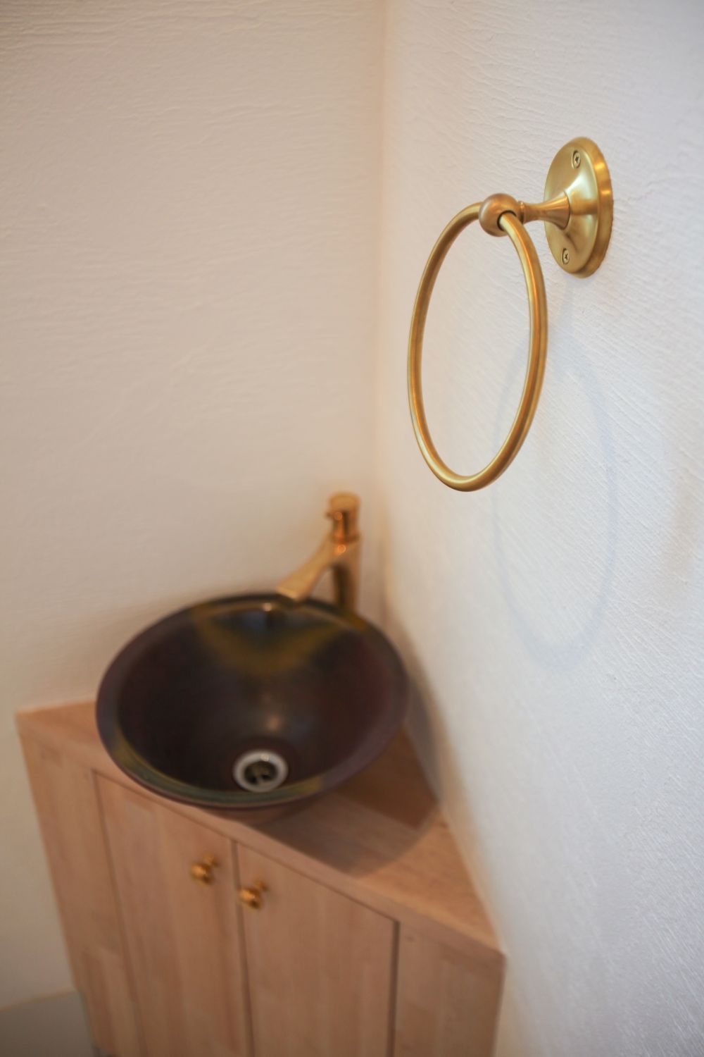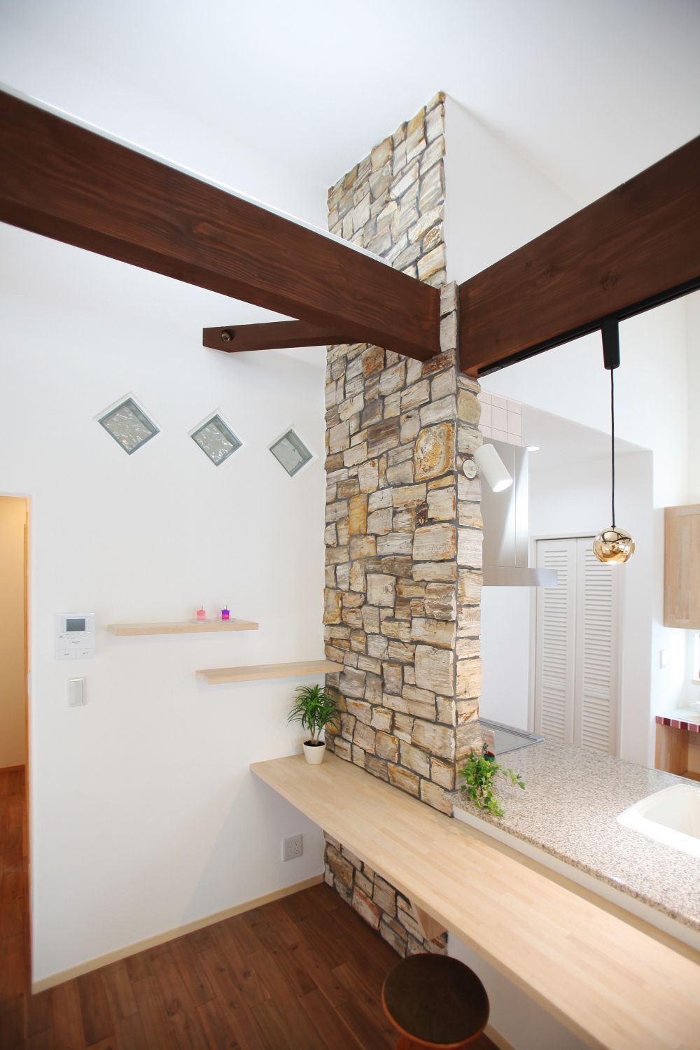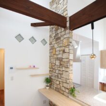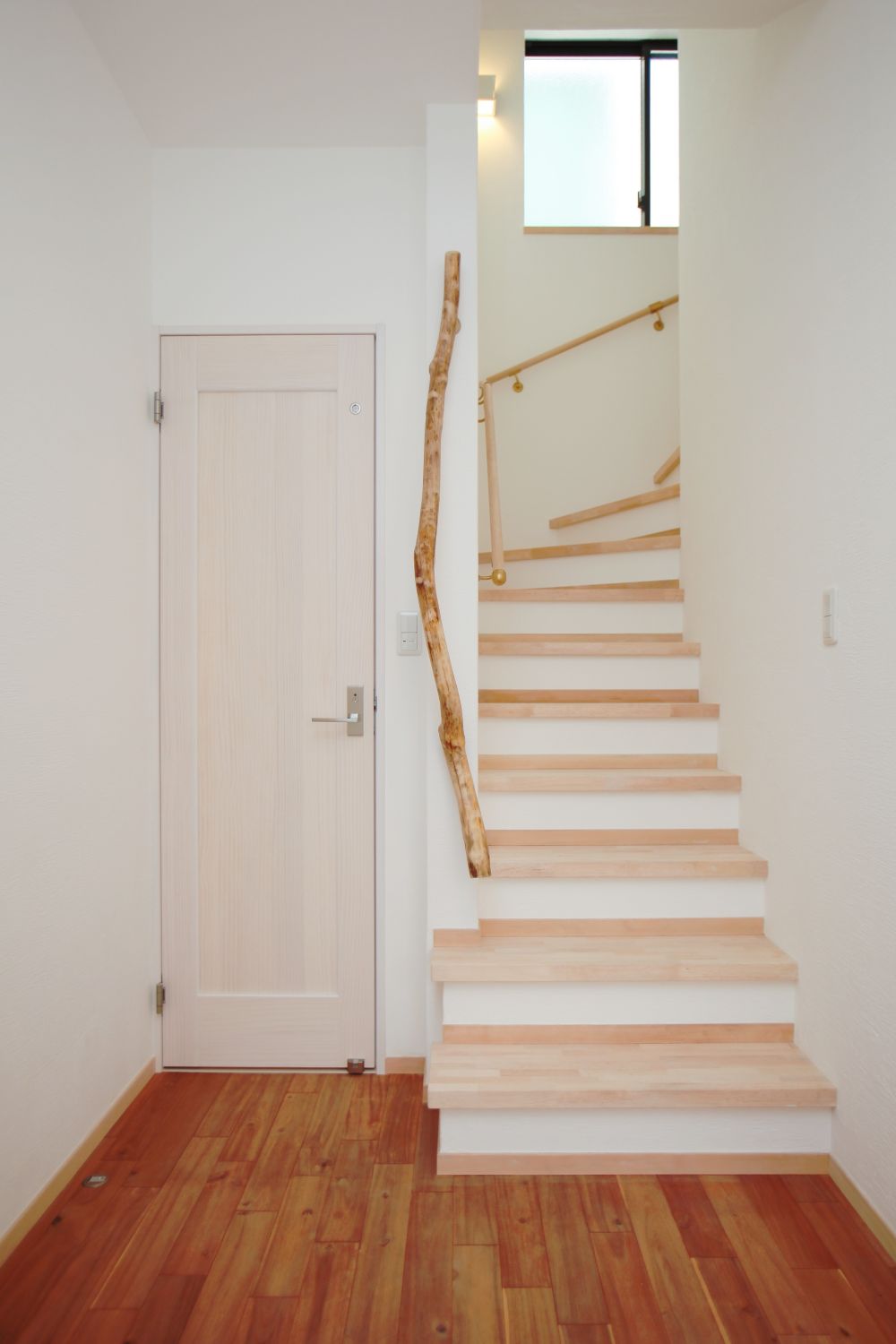 玄関や階段には、オーナー様が自ら選ばれた流木の手すりを設置。漆喰で作られた飾り棚や、一つひとつデザインの違うキッチンの取手など、細部にまでこだわりが光ります。お気に入りのものに囲まれた暮らしは、日々の生活に彩りを与えてくれるでしょう。