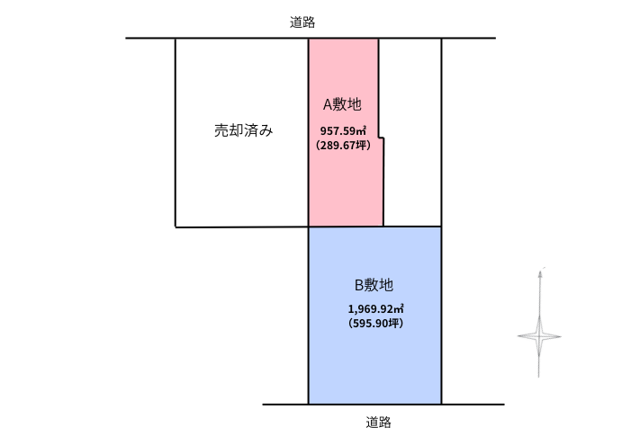 A敷地:957.59㎡(289.67坪)  B敷地:1969.92㎡(595.90坪)