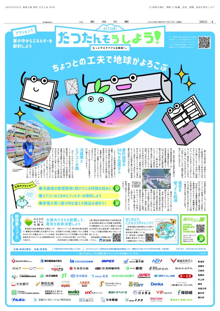 イワコンハウスは、新潟日報社が主催する脱炭素プロジェクト「だつたんそうしよう!」を今年も応援します!