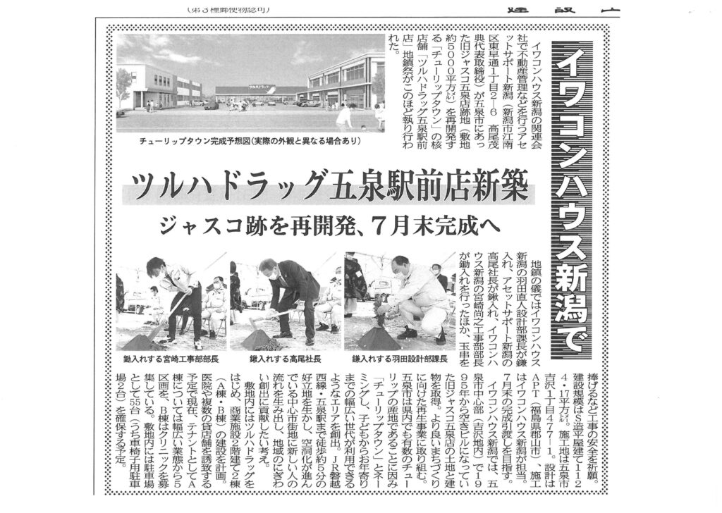 2021.4.26の日刊 建設工業新聞に 「五泉チューリップタウン地鎮祭」の記事が掲載されました。