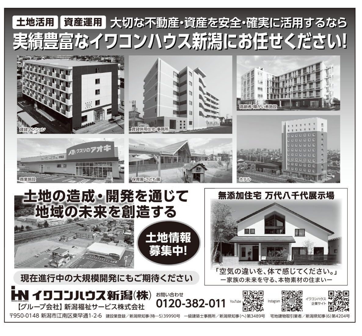 11月1日(土)の 新潟日報 朝刊 にて、イワコンハウス新潟の広告が掲載されました。