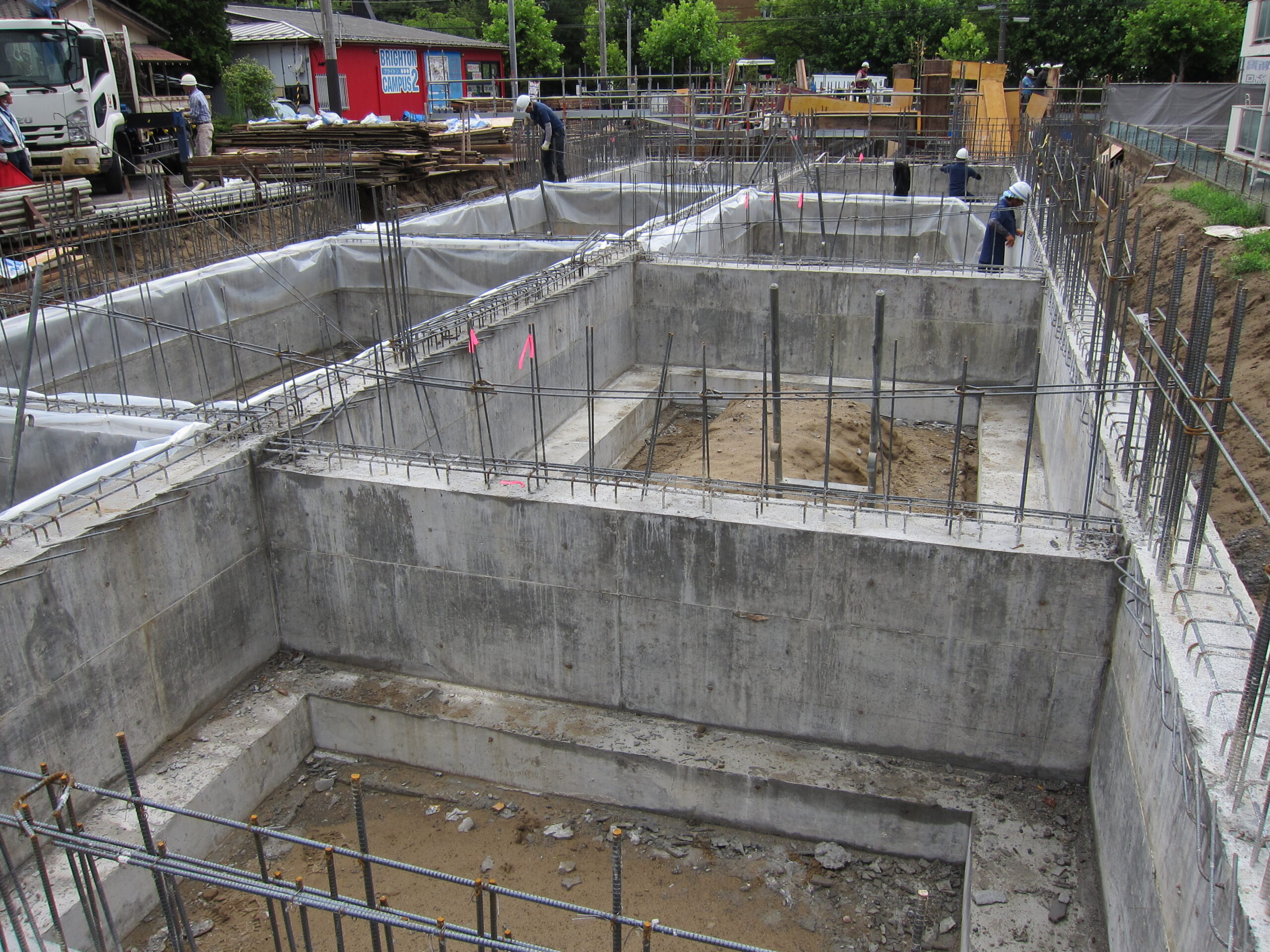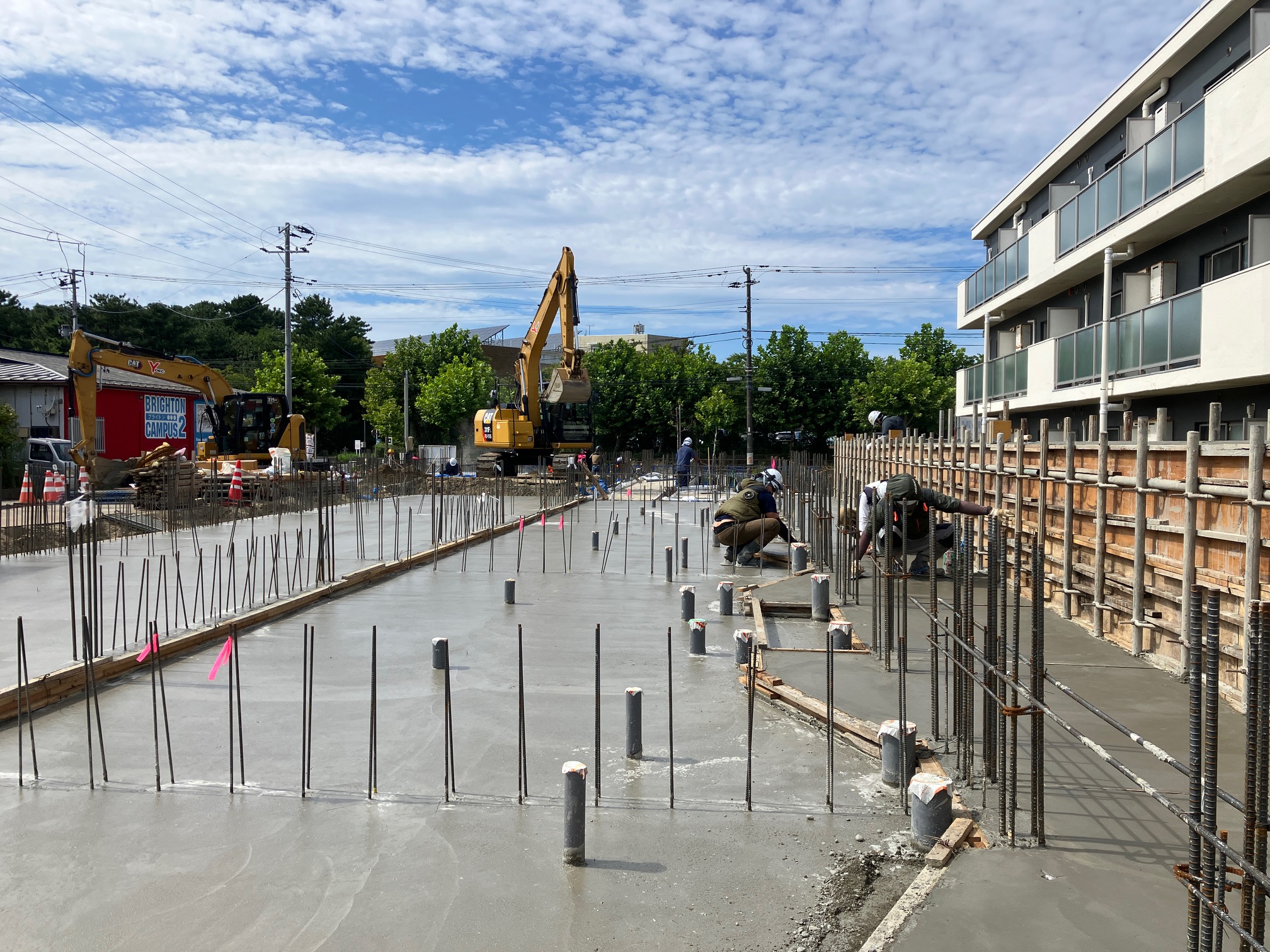 現場では、基礎配筋・型枠工事を経て、1階部分の床・土間コンクリートの打設工事を完了しました。