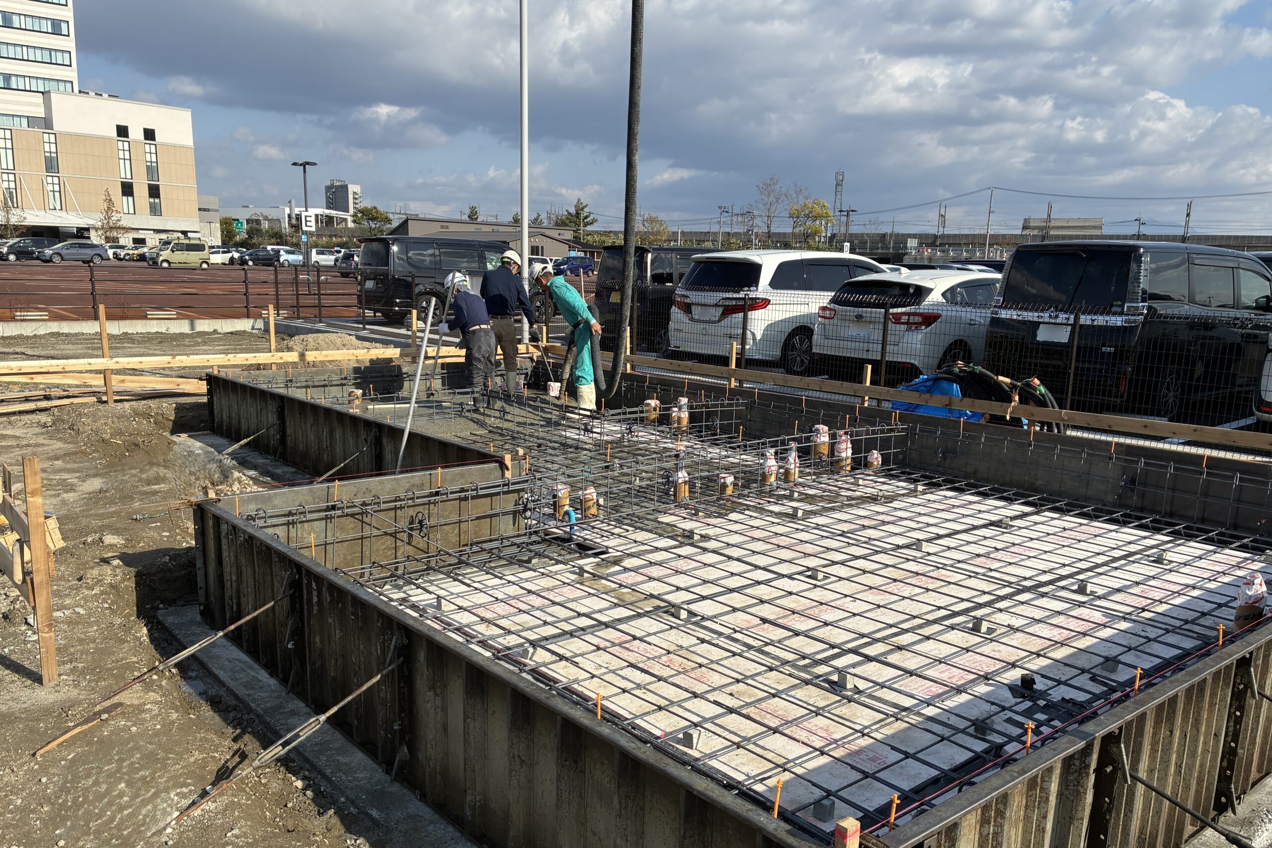 建物の基礎となる部分が整い、これから上部構造の施工へと進んでまいります。