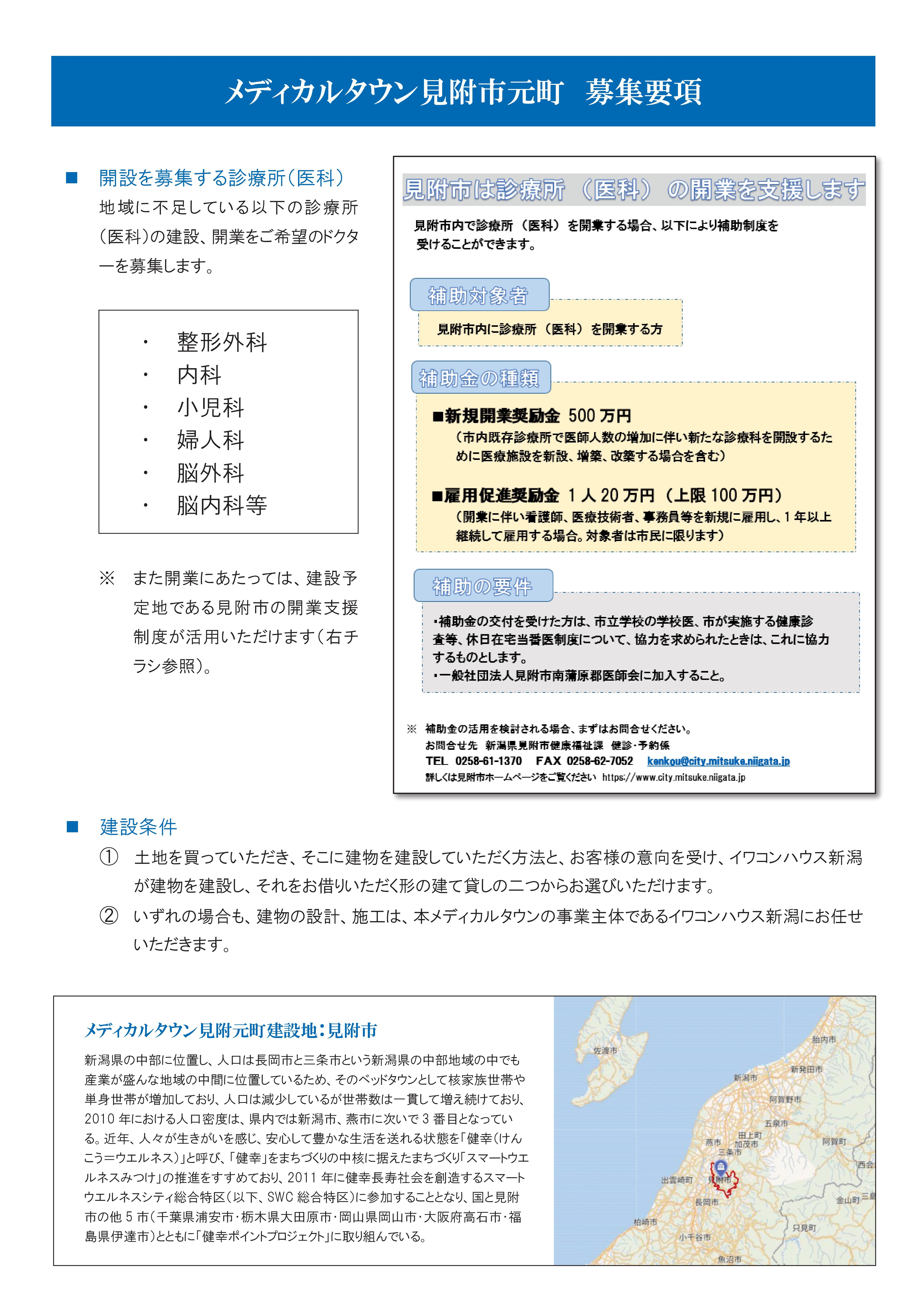 ※開業にあたっては、建設予定地である見附市の開業支援制度をご活用いただけます。