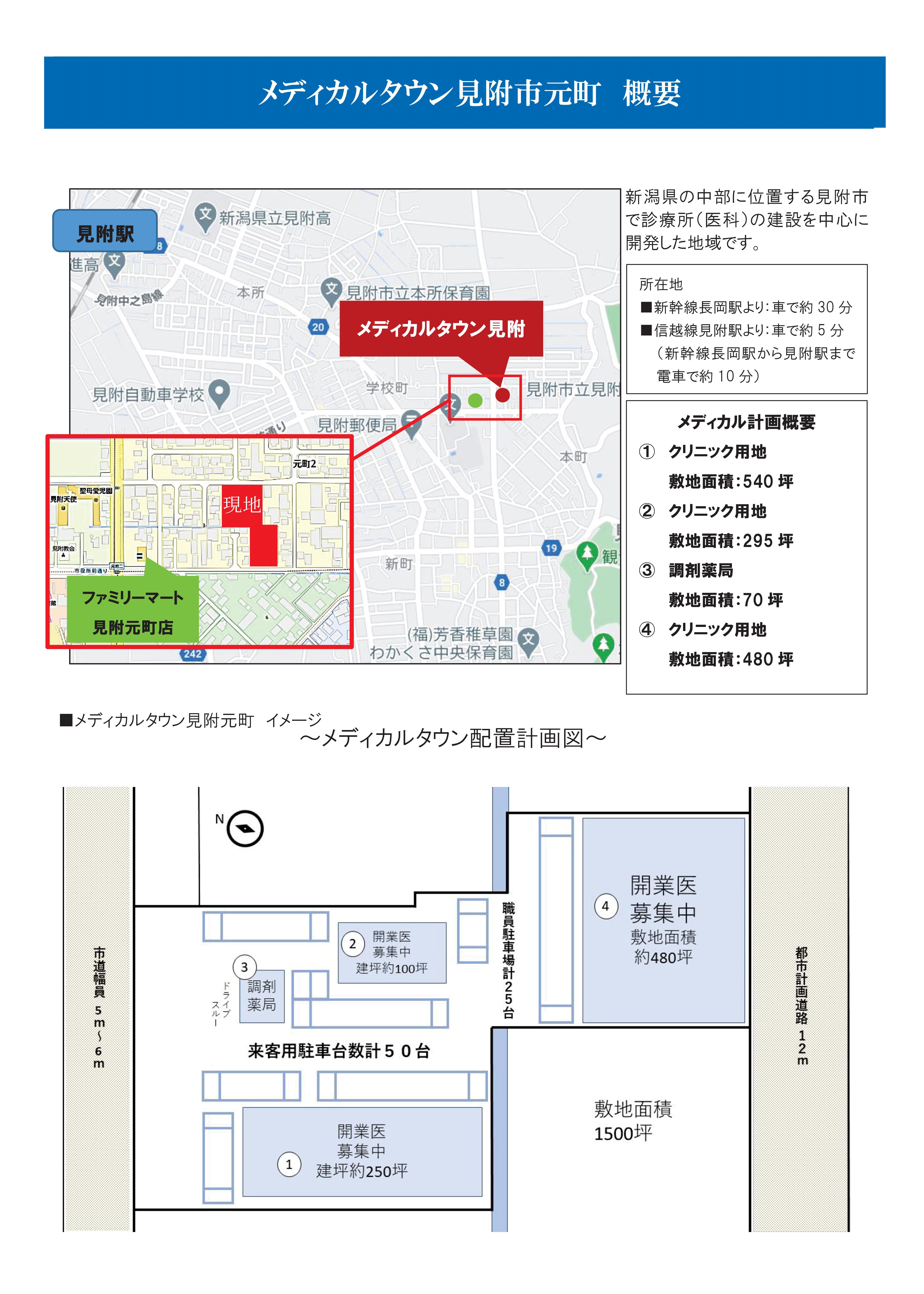新潟県の中部に位置する見附市で診療所(医科)の建設を中心に開発した地域です。